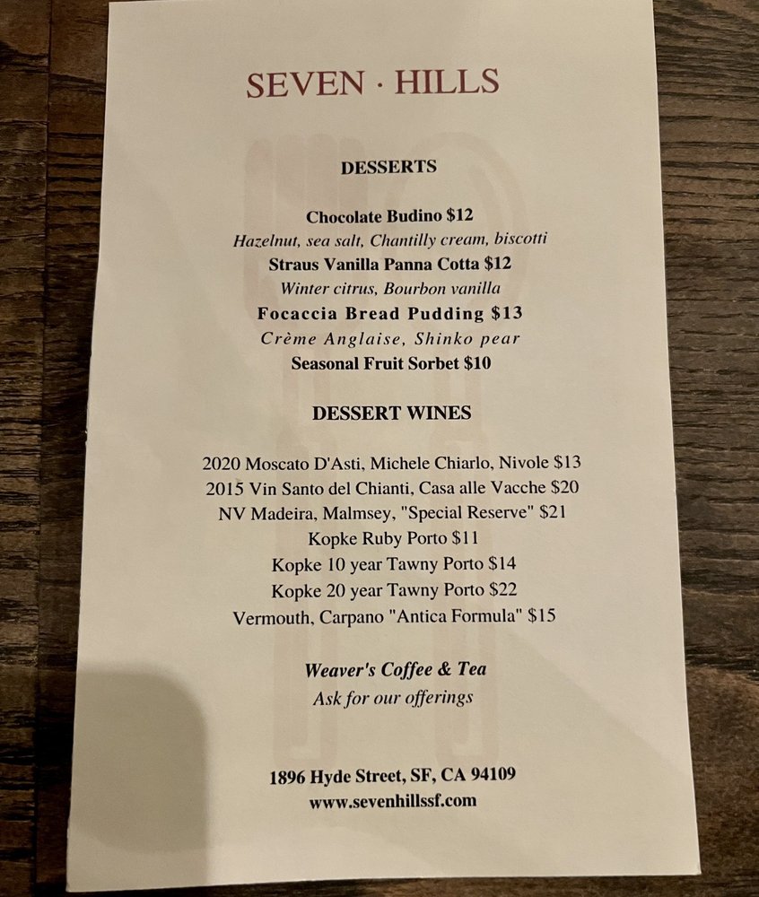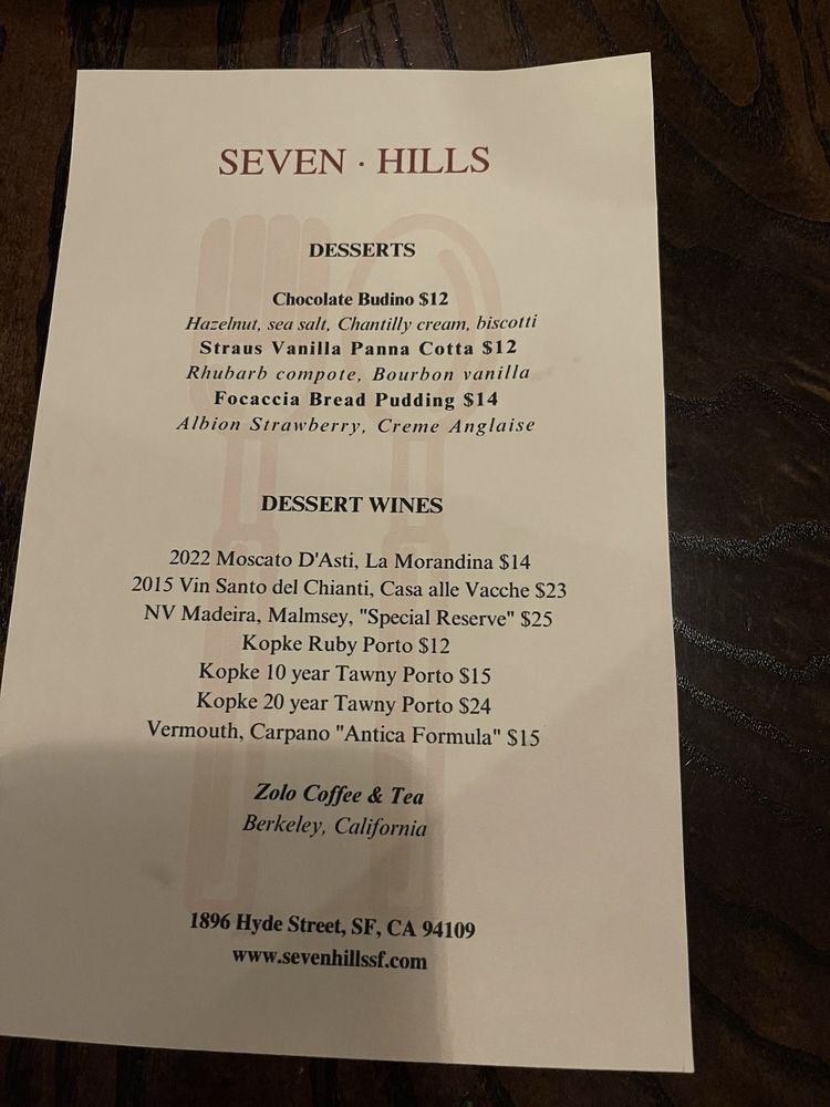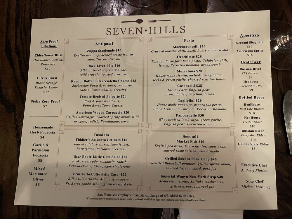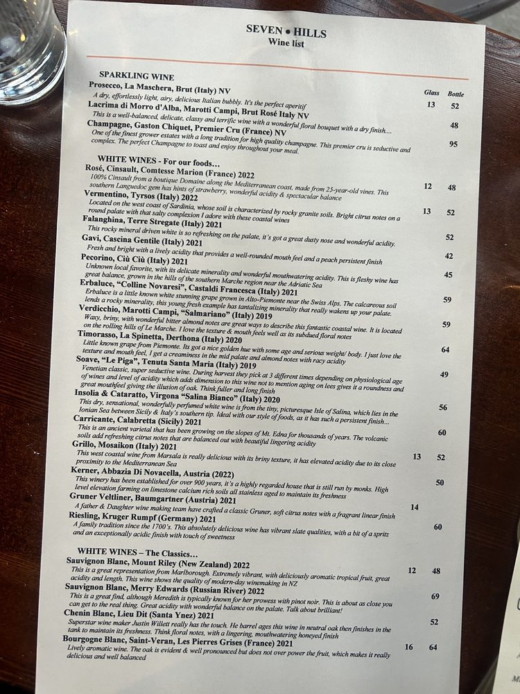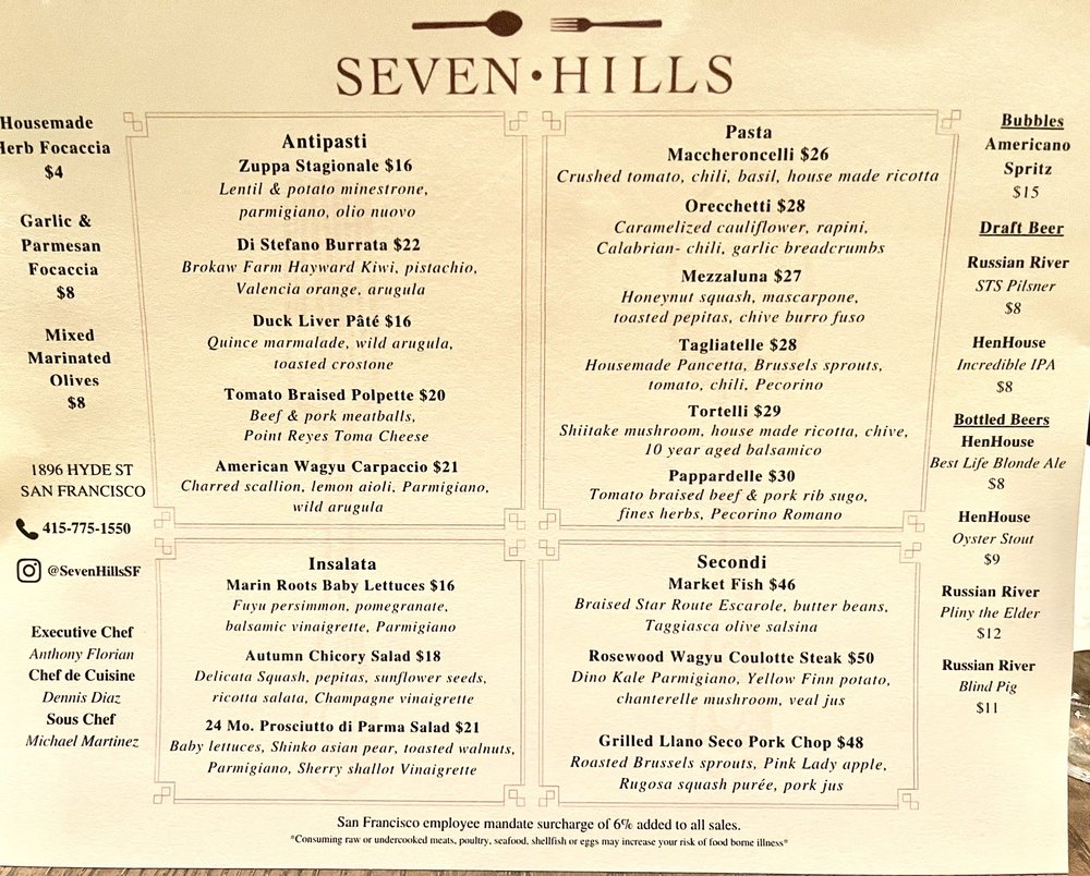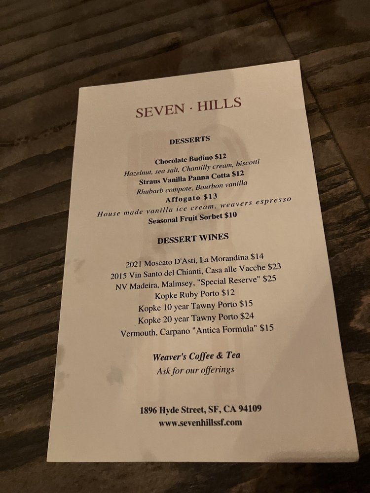 Seven Hills Menu (Update 2025)